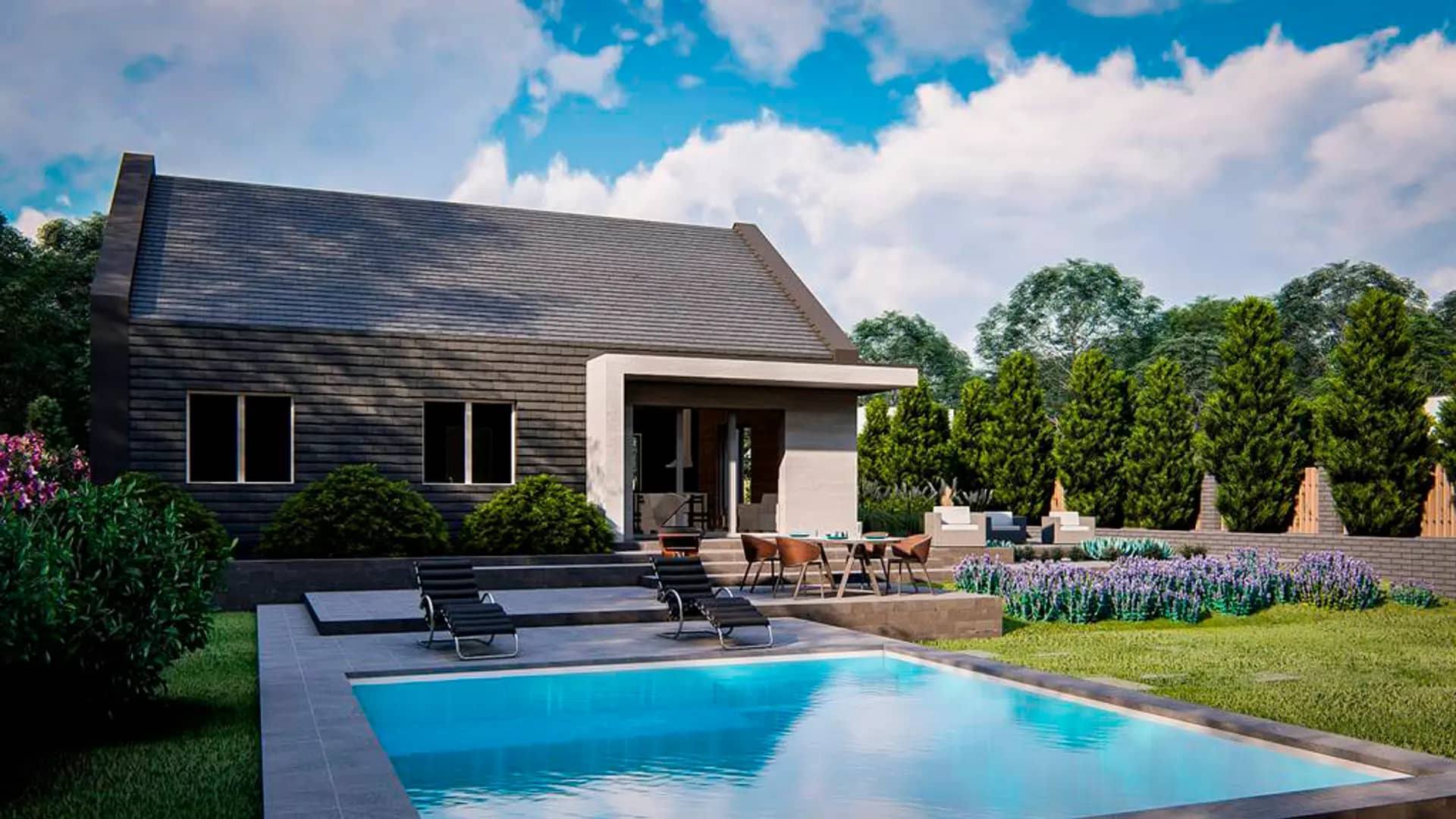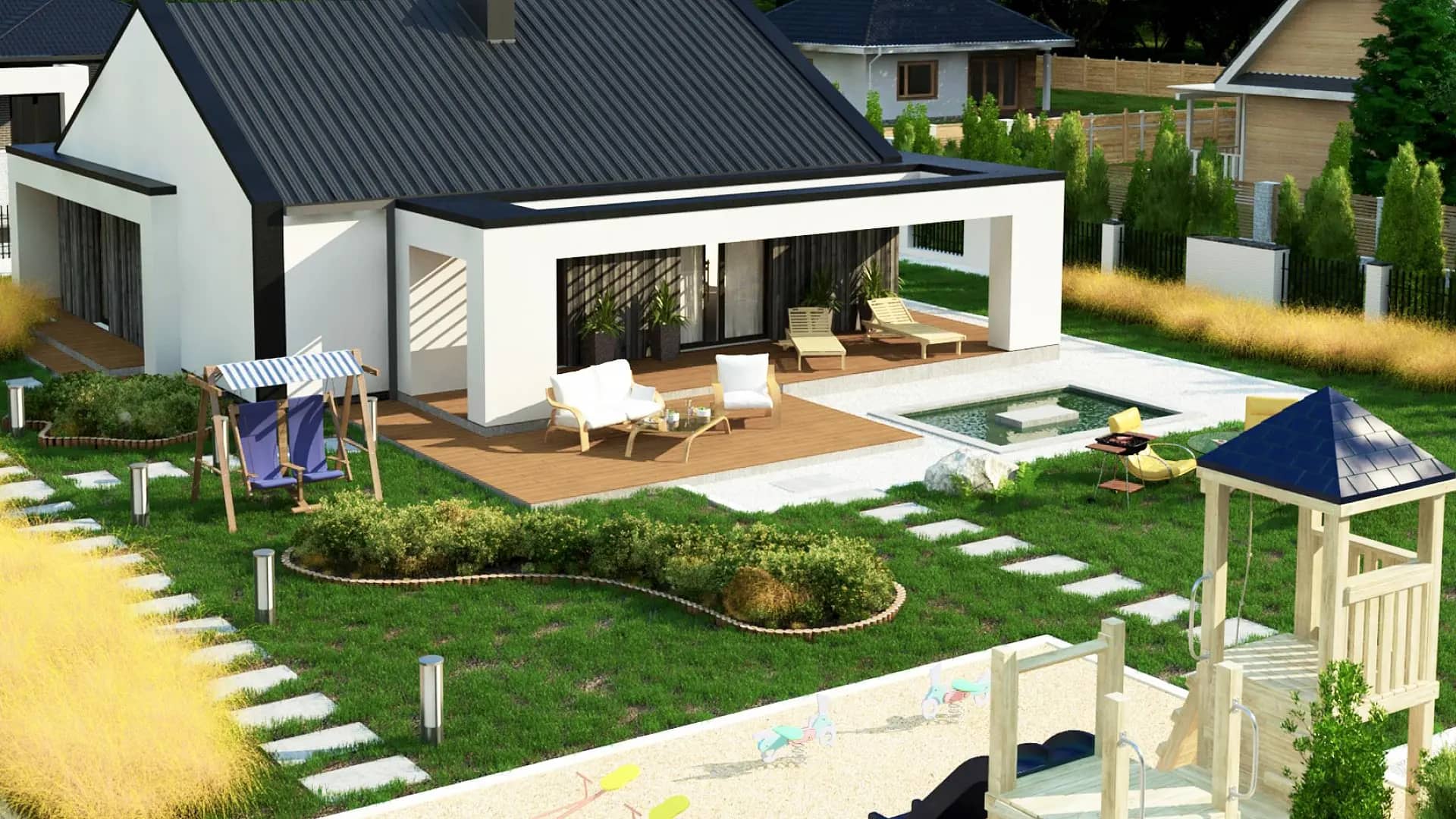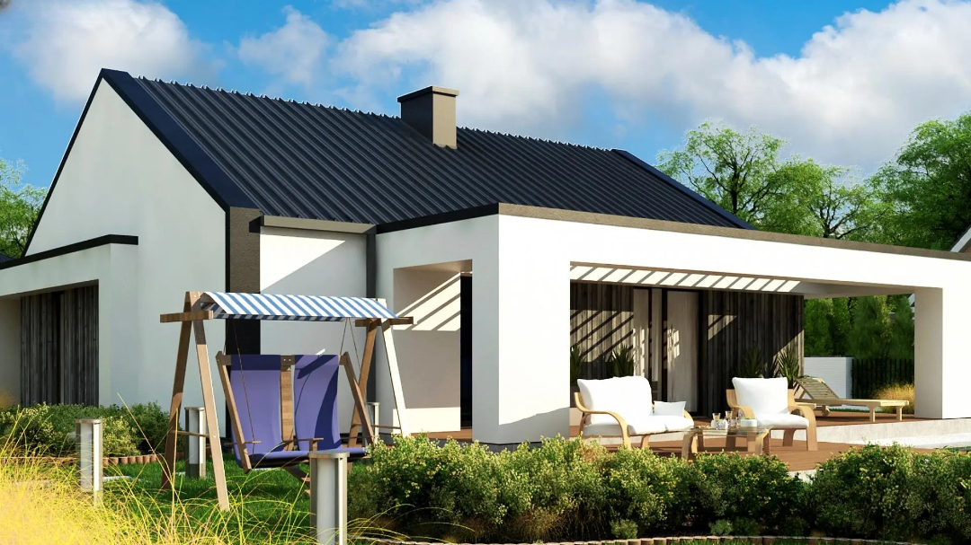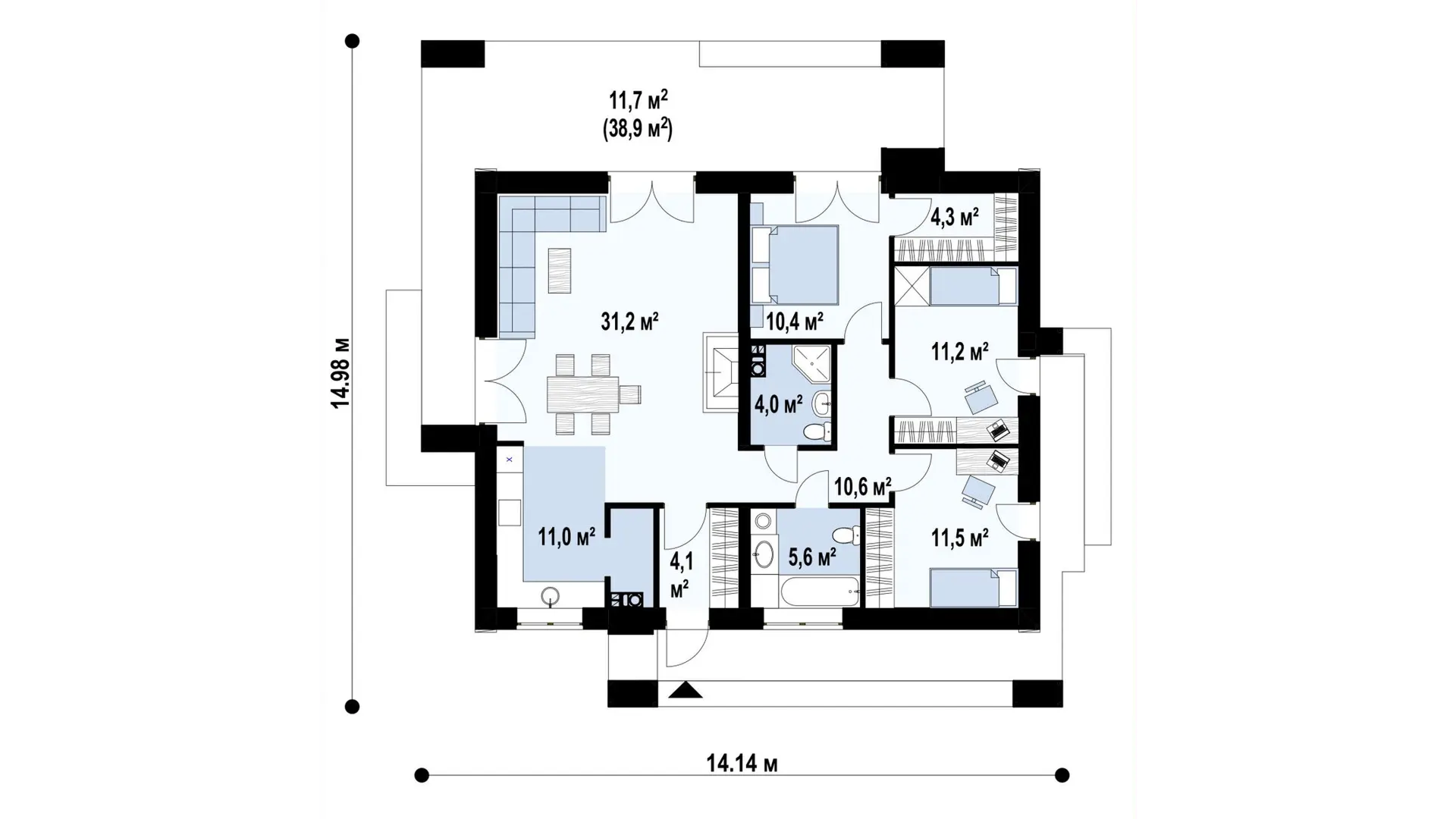 Современный одноэтажный дом с 3 спальнями, идеально подходящий для семьи из 4 человек.